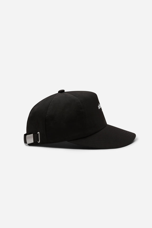 Our new custom headwear silhouette – a structured 5-panel cap with a wide visor and more structured body. Made from lightweight nylon with a screen printed box logo at the front and metal strap adjuster at the back. Clean, breathable, and built to hold shape.